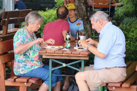Ma guarda qui… si che lo riprendo il profumo di pesce che viene festoso da questo ristorantino lungo la strada con piatti a base di persico e trota; e guarda quei vecchietti che osservano curiosi tra una patata ed un boccone di pesce.. che non hanno mai visto da queste parti una webcam come me all’opera?