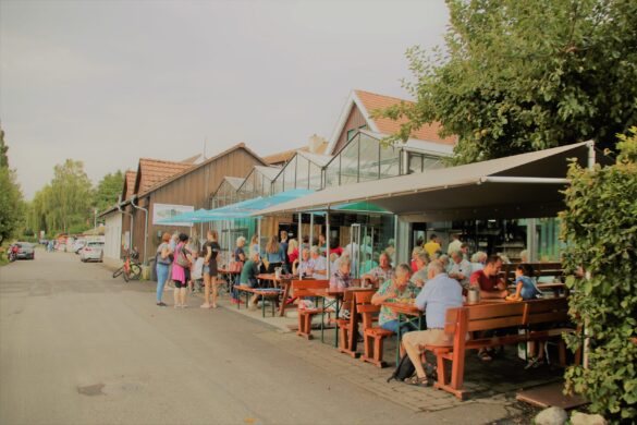 Chiesa imponente questa seconda che filmo… chiesa e rathaus, i due poteri vicini vicini… chi controlla chi sembrano dire… tutto è pulito e ordinato, rigoroso nella sua semplicità. Mi soffermo a guardare quei due vecchietti davanti al loro tramonto (anche se è mezzogiorno!). Sembrano così sereni….