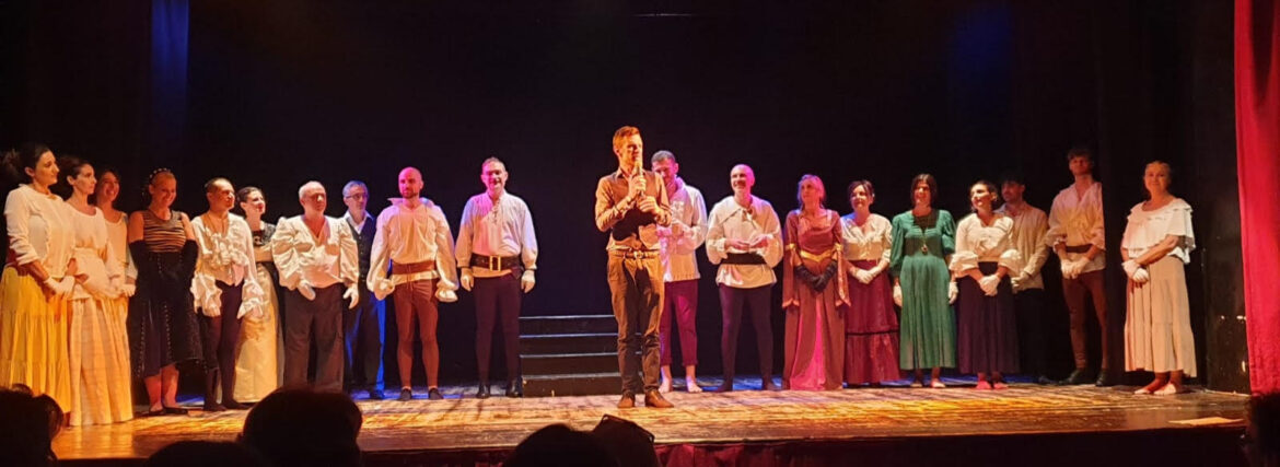 Un’esperienza corale: l’incontro (e certe volte il contro) con un gruppo umano complesso, variegato, strabordante di sè, in costante tensione emotiva, ma sempre proteso a collaborare. Persone con cui nel tempo i rapporti si sono sviluppati, cresciuti, fioriti, evoluti ed involuti, compagni di avventura teatrale, che potranno essere amici per un pezzo non si sa quanto lungo di vita. Compagni che hanno saputo tenermi quando è stato necessario e aprirmi il cuore lasciando che io penetrassi senza risparmiarmi nell’entrare nei loro spazi interiori, persone che hanno saputo vedere cosa c’è dietro il mio colore, l’esuberanza, le parole ed i pensieri, e persone che semplicemente non possono farlo, fascinazione e spavento, amicizia e serena distanza… un gruppo di individualità che è stato un compagno agrodolce di questa esperienza, ma che al momento del sipario, dietro quelle tende rosse, mentre il nostro regista parlava, era un unico cuore, un’unica testa, un’unica mano che toccava quelle tende per sentire l’afflato di energia… un unico battito ed un solo sussurro, un solo sguardo… un’unica bellissima assenza di sospiro.